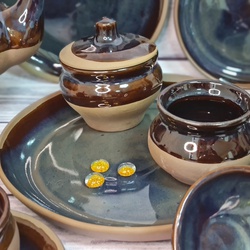 КАМЕННАЯ КЕРАМИКА имеет 0% пористости, она более прочная, чем обычная керамика, потому что обжиг осуществляется на высокую температуру (1200 ℃), с использованием специальных глазурей. Черепок спекается полностью до образования искусственного камня – муллита. КАМЕННАЯ КЕРАМИКА имеет тёмный цвет черепка и в сочетании со специально подобранными глазурями имеет оригинальный вид.