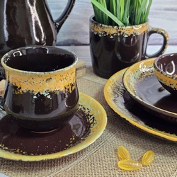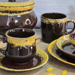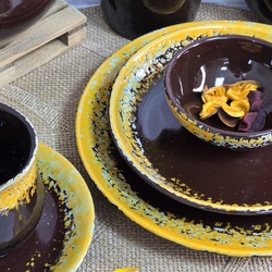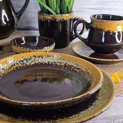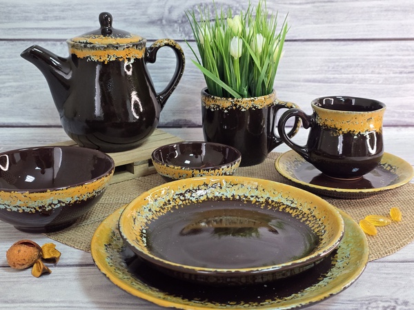 Вы ищете способ добавить изысканности в свою кухню? Представляем Вам нашу уникальную посуду шоколадного цвета с яркой окантовкой жёлто-бирюзового цвета. Этот набор станет не только функциональным элементом на вашей кухне, но и настоящим украшением вашего стола. Шоколадный цвет создает теплую и уютную атмосферу, а яркая окантовка придаёт современный вид. Такая посуда станет прекрасным подарком для друзей и семьи. Она подчеркнет вашу заботу и внимание к деталям.