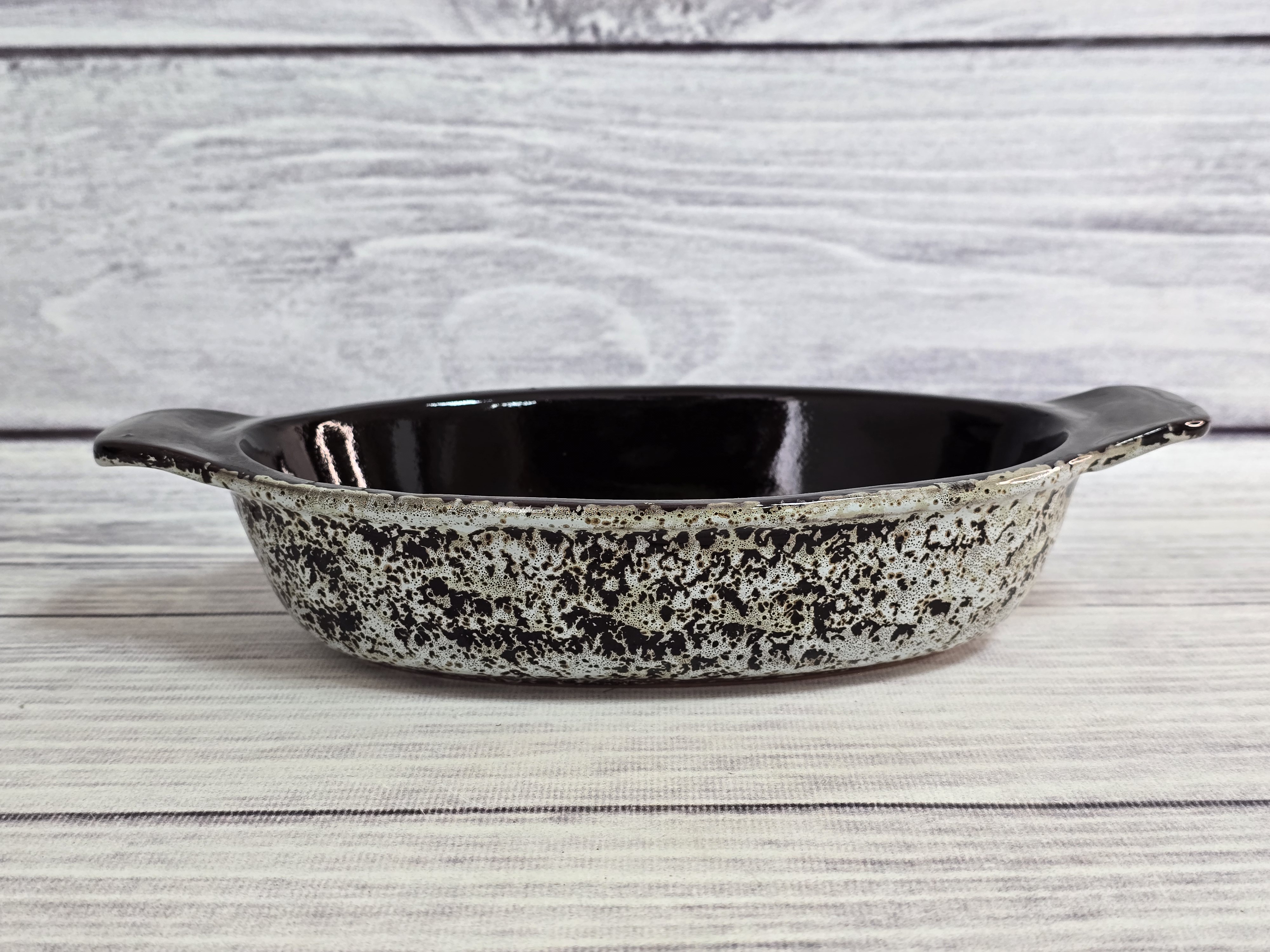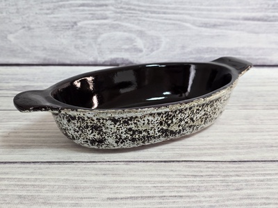 Жаровня Смак подходит для тушения или длительного томления овощей, мяса. В ней можно подать салат к столу. Это долговечная и удобная в использовании вещь. Она сделана из керамики и имеет продуманную форму, что обеспечивает теплообмен между жаровней и блюдом, а также помогает сохранить полезные свойства продуктов. Посуда имеет традиционный русский дизайн.