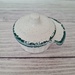 Кокотница для запекания жульенов. Белая глянцевая поверхность с тёмно - бирюзовыми брызгами и каймой.