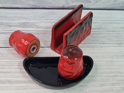 Набор для специй с необычным и стильным геометрическим декором. Элегантный набор для специй изготовлен из керамики, прекрасно сохраняет свежесть и вкусовые качества специй. Достойное украшение как для праздничного стола, так и для повседневной сервировки. Красивый и качественный набор, отлично выполняющий свои функции.