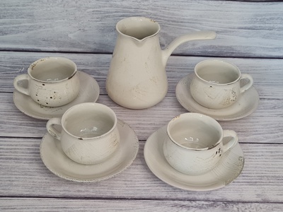 Кофейный набор Марокко создаст душевную атмосферу для любой беседы. В состав входит: турка 0,8л - 1 шт, чашка с блюдцем 0,25л - 4 шт. Модный цвет.