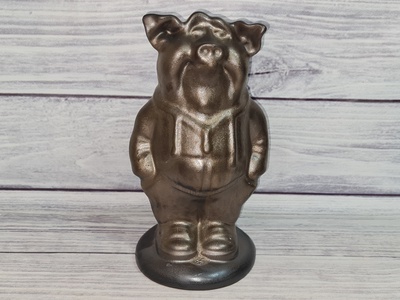 Керамическая статуэтка циничного поросенка в спортивном костюме. Отличный подарок. Покрытие - глазурь.  Имеет характерный блеск и бронзовый оттенок.