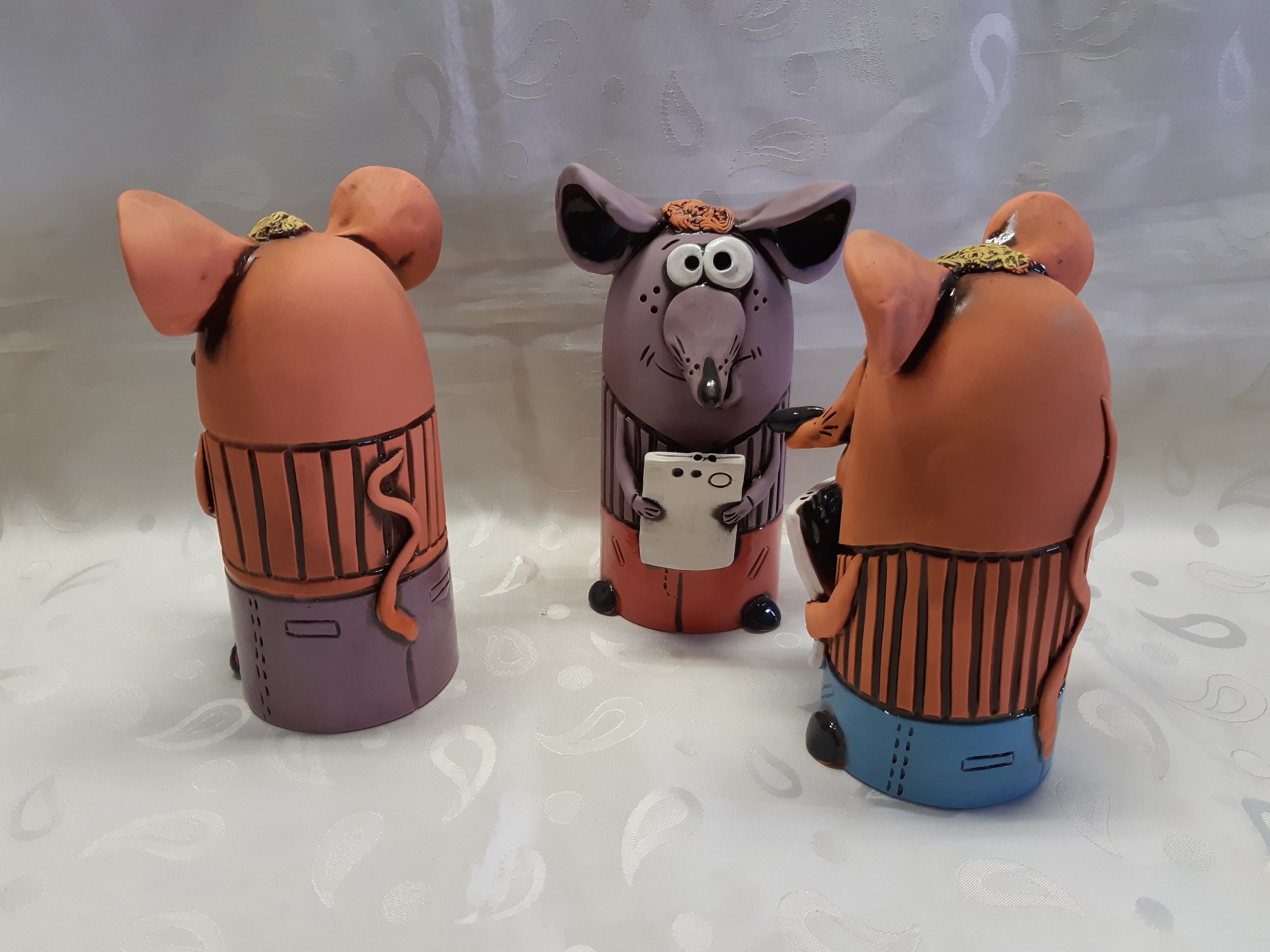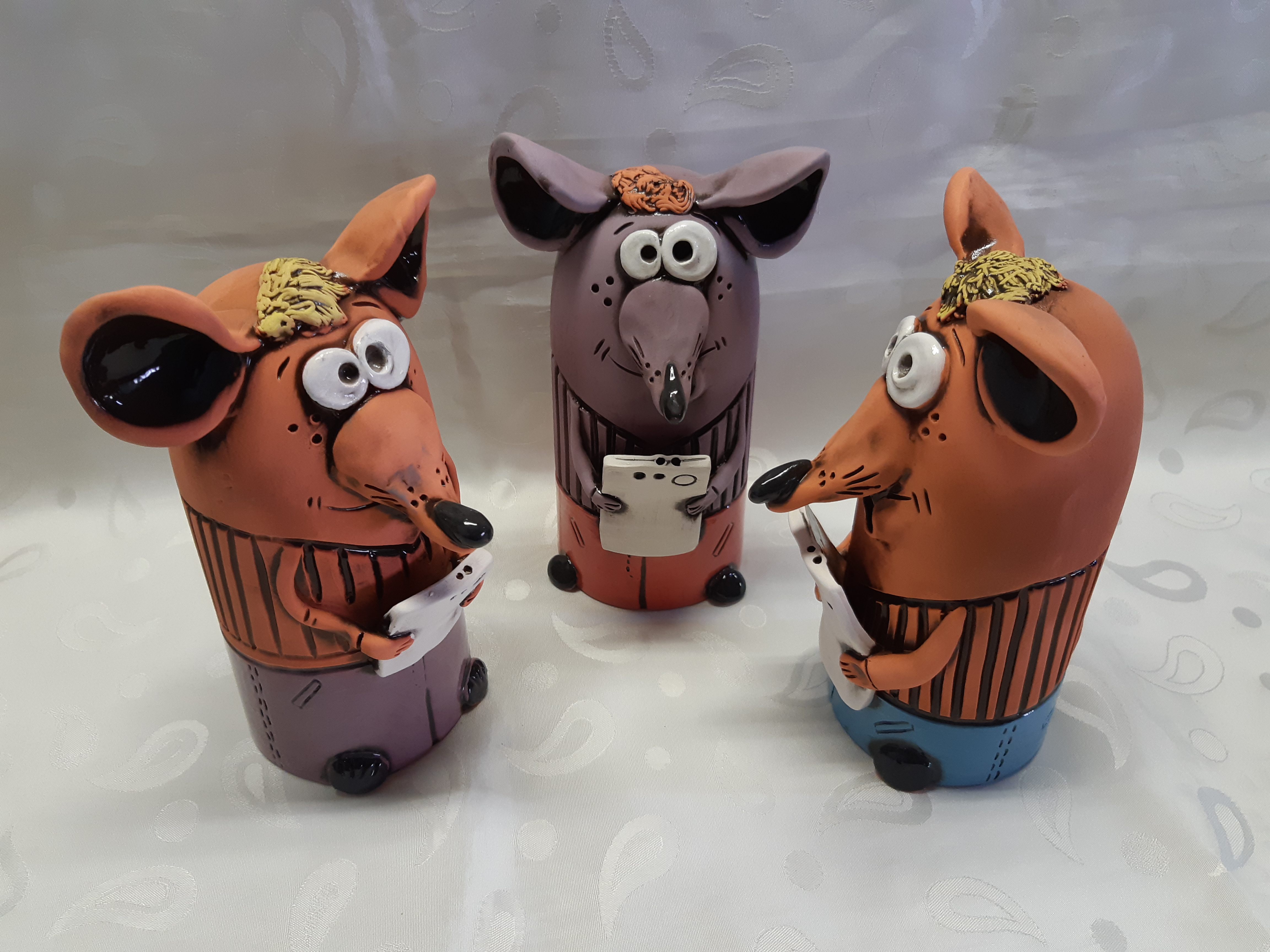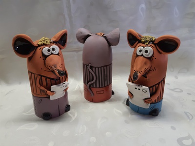 Статуэтка крысы с мобильником. Великолепный подарок и оригинальное украшение интерьера. Покрытие - глазурь, ручная роспись. Изделие полностью изготавливается вручную, поэтому возможны отличия в оформлении от представленного на фото. Наш менеджер, получив заказ, предложит имеющиеся в наличии варианты.
