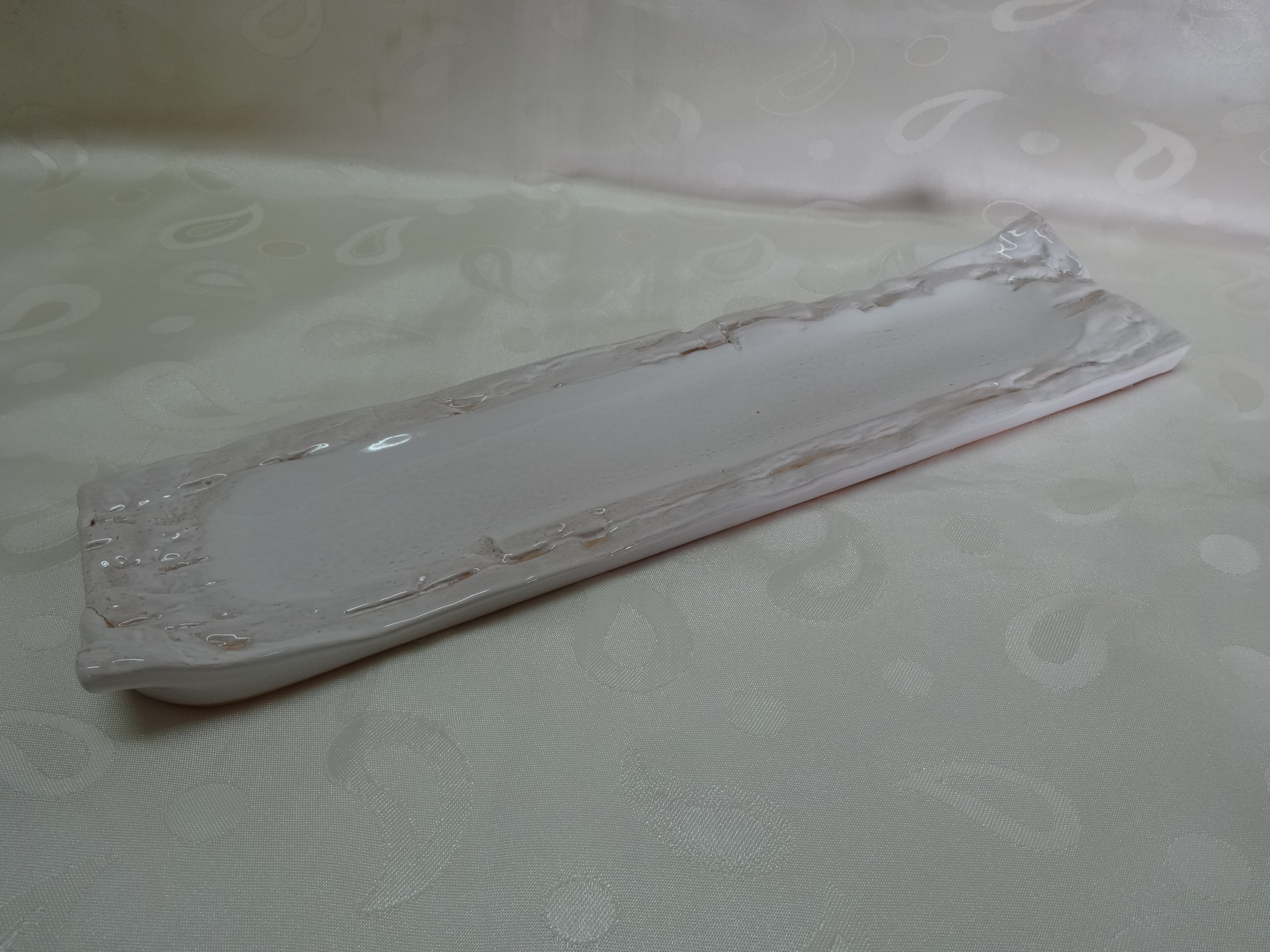 Блюдо для подачи в виде доски. Такое блюдо будет несомненно интересно для ресторанов, так как в последнее время модной тенденцией высокой кухни стала эксклюзивная подача блюда, призванная удивить посетителя. Наша доска предназначена для порционной подачи, такая подача блюда – это модно, брутально, стильно и натурально. Цвет: белый